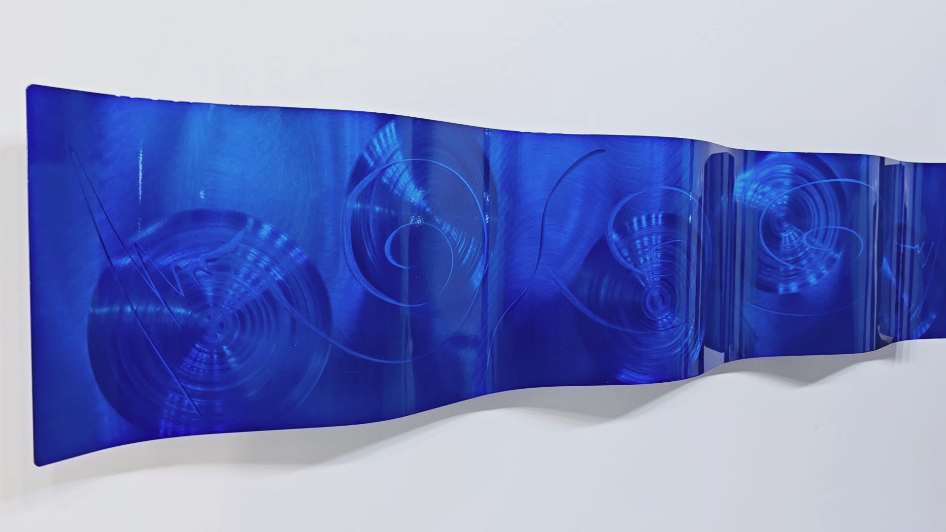 Elevate your living space with the captivating allure of the “Large Blue Wave" by Jon Allen. Handcrafted in the USA from high-quality aircraft-grade aluminum, this modern wall art masterpiece is a testament to expert craftsmanship and enduring elegance. Measuring 46" x 10", its sleek design features hand-formed bends and curves, creating a mesmerizing dimensional effect that adds depth and dimension to any room. Whether adorning your living room, bedroom, kitchen, entryway, or patio, this versatile wall sculpture is a statement piece that effortlessly enhances any decor style.