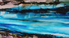 The luminous resin finish creates incredible depth and dimension, with colors that seem to shift and shimmer as light moves across the surface. Each viewing reveals new details in the fluid patterns—from deep navy currents to crystalline aqua shallows—capturing the ever-changing nature of the sea in a single stunning piece.